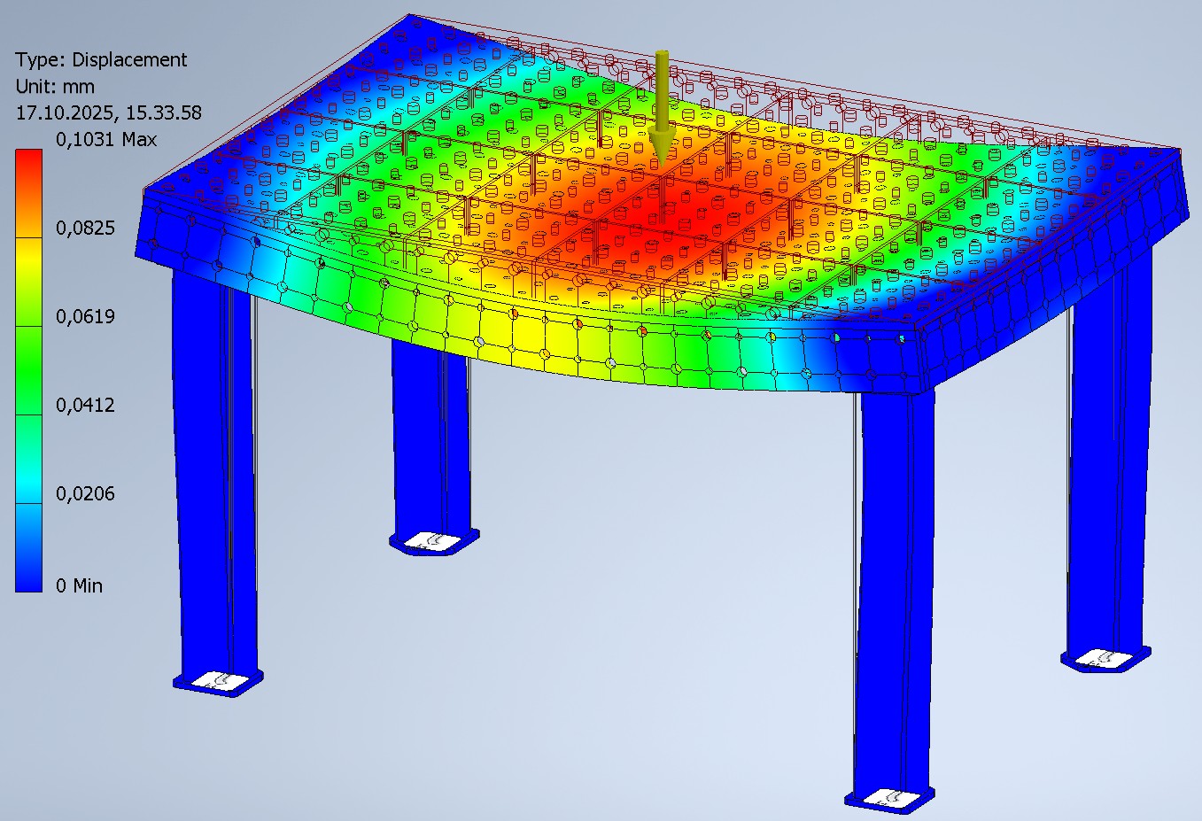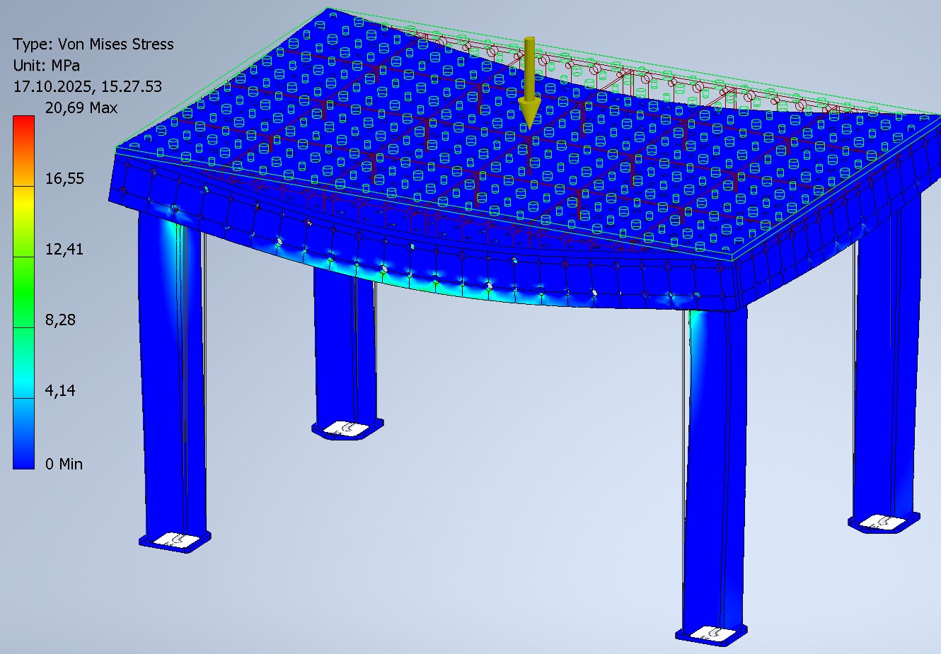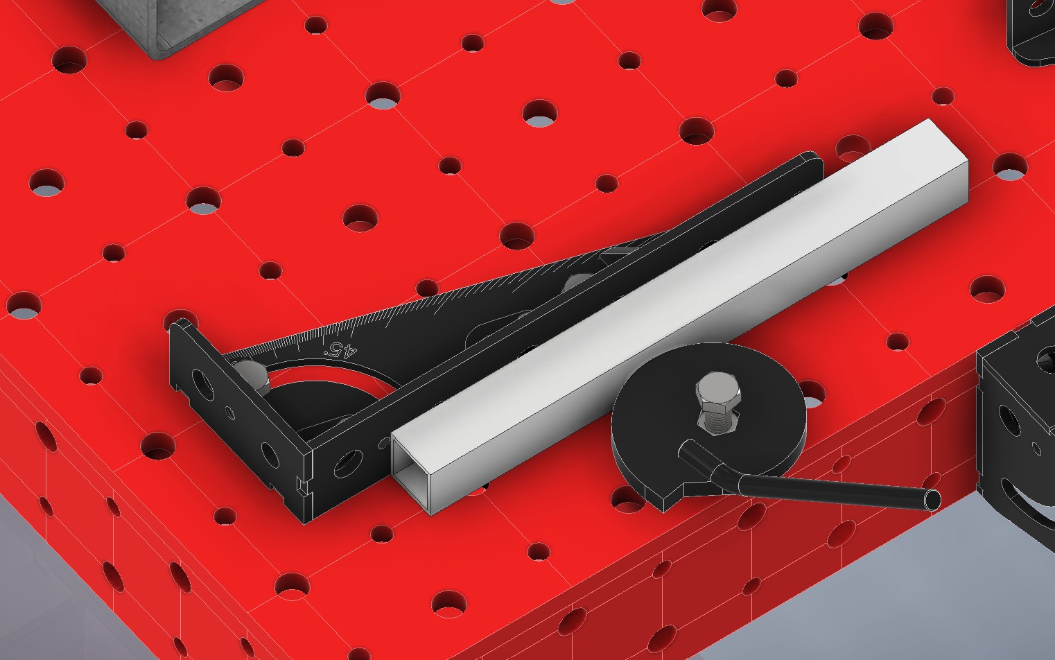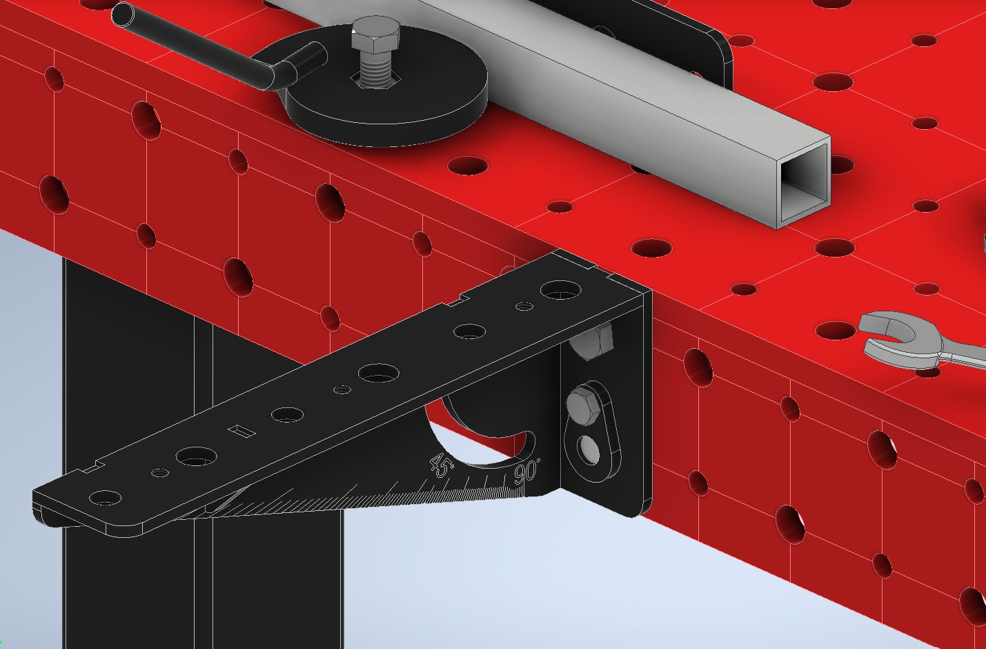 Hitsauspöydän koko (1200x800). Kansilevyvahvuus pl12mm (kansi+sivut), pl5mm (muut osat) ja RHS80x80 jalat. Massa noin 170kg. Kannessa D16mm reiät työkaluille (jako 100mm) ja M12 kierrereiät lukituksiin (jako 100mm). Kierteet kierretapilla akkuporan istukassa suoraan laserleikattuun esireikään. Kannessa merkattu mittaristikko.